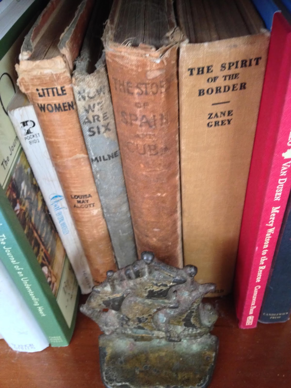 We had a bookcase filled with the strangest collection of books. One volume from the Encyclopedia Britannica, one book on etiquette, one book called Mathematics Made Easy, one called Reading is FUNdemental, The Well of Lonelinessby Radclyffe Hall, Black Beauty, Water Babies, a book on the Spanish War of the 1800s, several books by Zane Grey, science textbooks, how-to books, and the complete Sherlock Holmes. I read them all, most of them several times, each one as I was ready. I started writing in earnest when I was eight. My dad had died the year before, and I was baby-sitting my two-year-old sister all summer while my mom worked two jobs: shoe factory and restaurant. I made up stories and wrote them down.